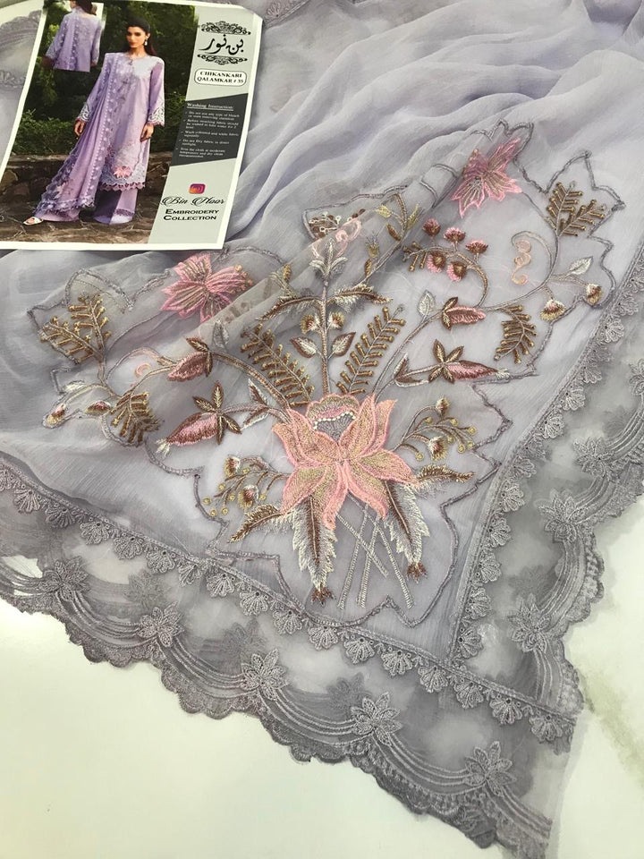 Brand :Qalamkar 2025 Fabric: Cotton Lawn, Chiffon •Heavy Chikenkari Embroidered Front•Front Daman border•Chowk Daman bunch•Plain...