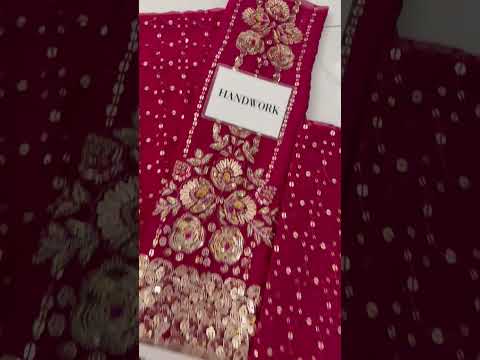 BRAND NAME: AMAVE-AM04 Shocking Pink Embroidered Chiffon Suit With Handwork Sleeves, Malai Trouser & Chiffon...
