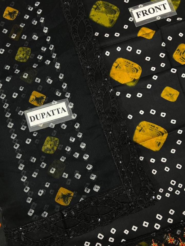 Crinkle Printed Chiffon Dupatta With 4-Side Heavy Embroidered Cutwork Borders Attached