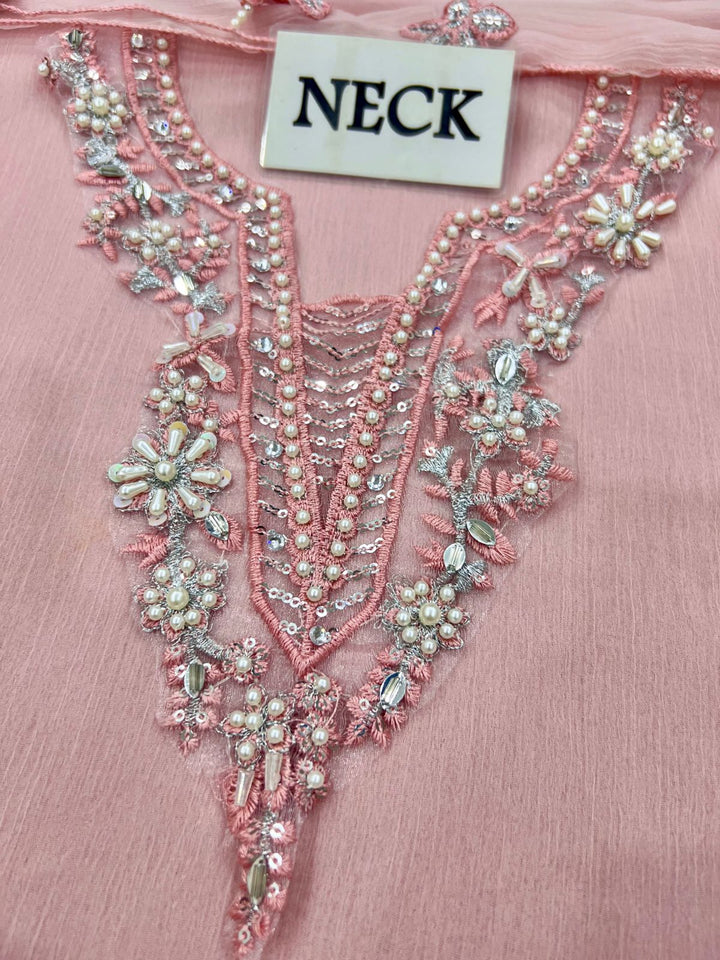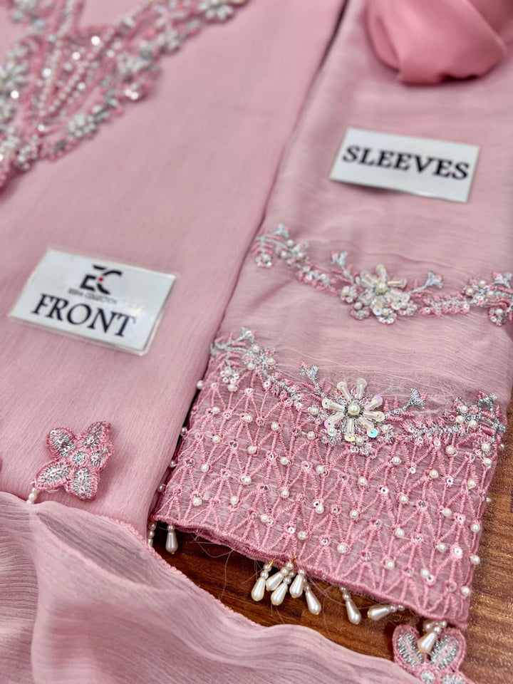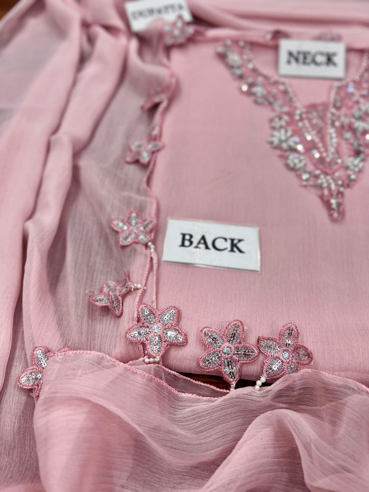 BarooqueLuxury Chiffon Hand Embellished Festive Collection 2025/26 Chiffon Dyed Front, Along with Elegant Embroidered Neck...