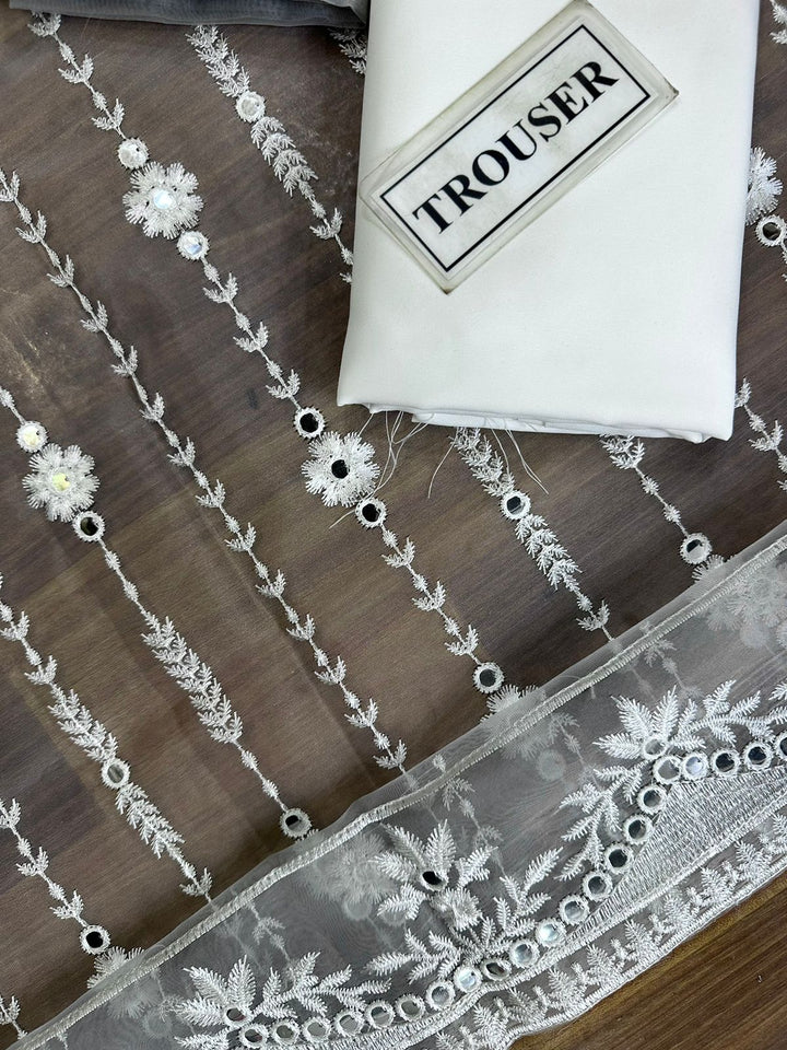 BRAND….CROSS STITCHEDUnstitch Replica FABRICORGANZA Suit With Malai Trouser DETAILS •9mm Sequence Embroidered Front •Plain Back •9mm...
