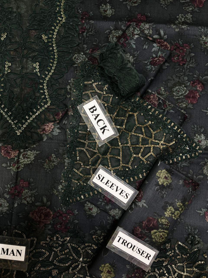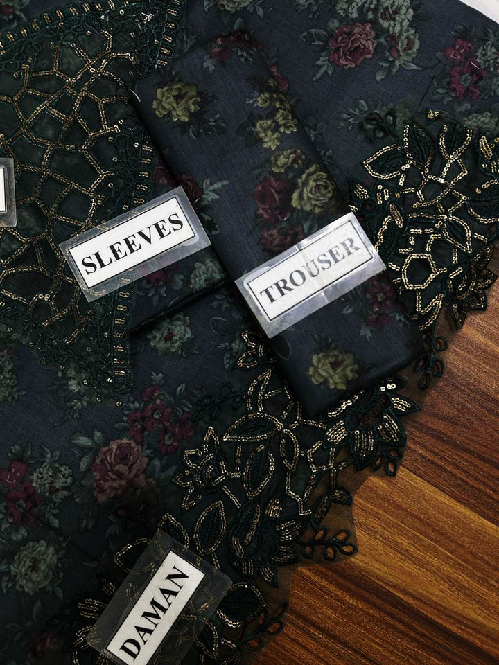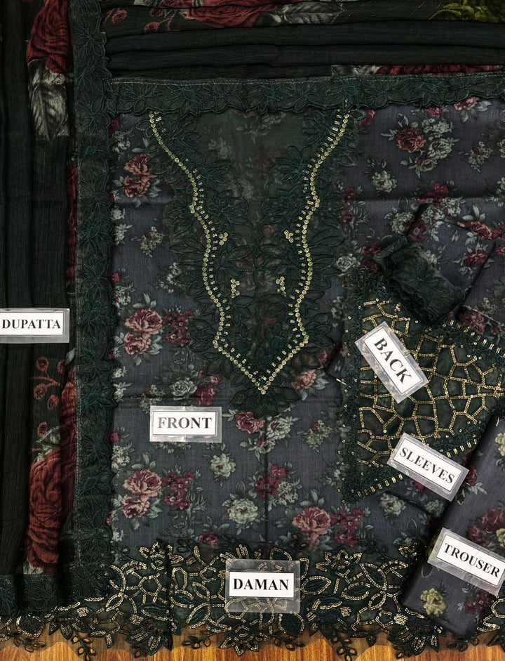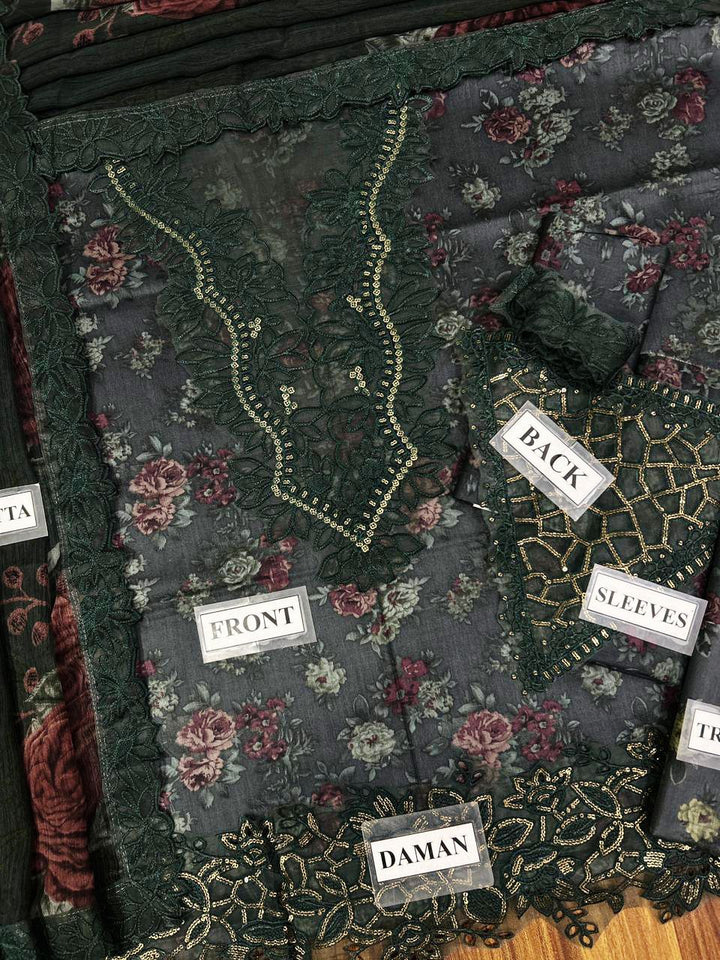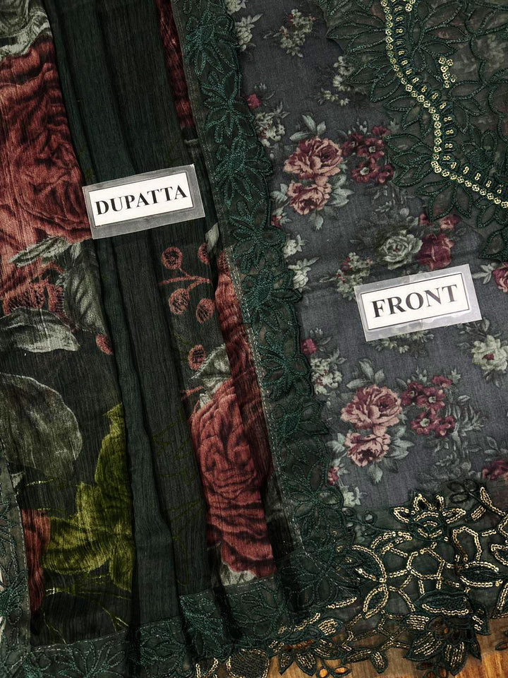 •Printed Chiffon Dupatta with 4 sides embroidered, Ready to wear