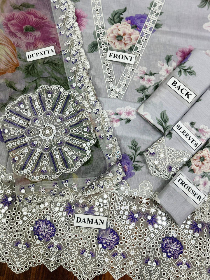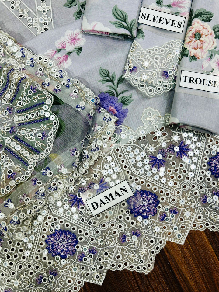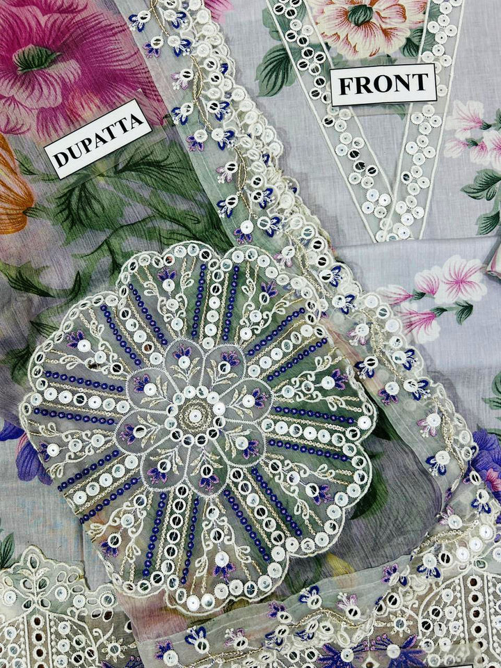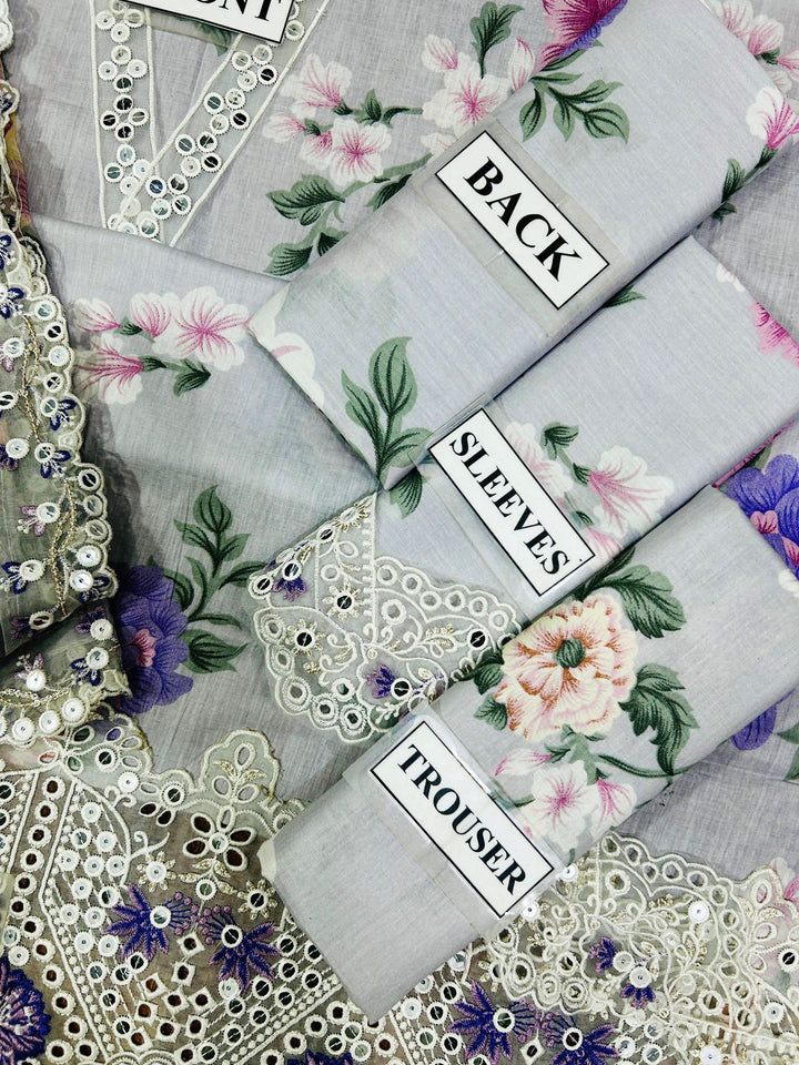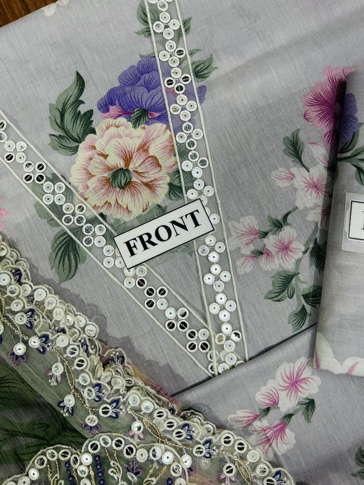 •Printed 90/70 Lawn Front with embroidered neck sequence 3mm sitara work