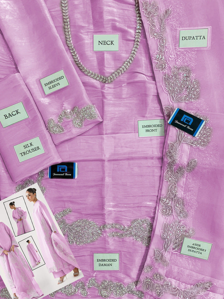 Brand: Zahvia Unstitched 03 suit Stuff Details:- ▪️Fantastic Sheesha Silk Shirt ▪️Fantastic Organza Dupatta ▪️Fantastic Sheesha Silk Trouser Embroidered...